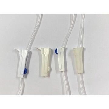 Slang: Het is een flexibele slang die de canule of naald verbindt met de vloeistofbron, zoals een IV-zak of een spuit. De slang is verantwoordelijk voor het transporteren van de vloeistof van de bron naar de patiënt.